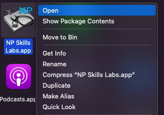 - Launch NP Skills Labs. You can find the installed application in the "Applications" folder or the location where you copied it. Double-click the application icon to launch it.